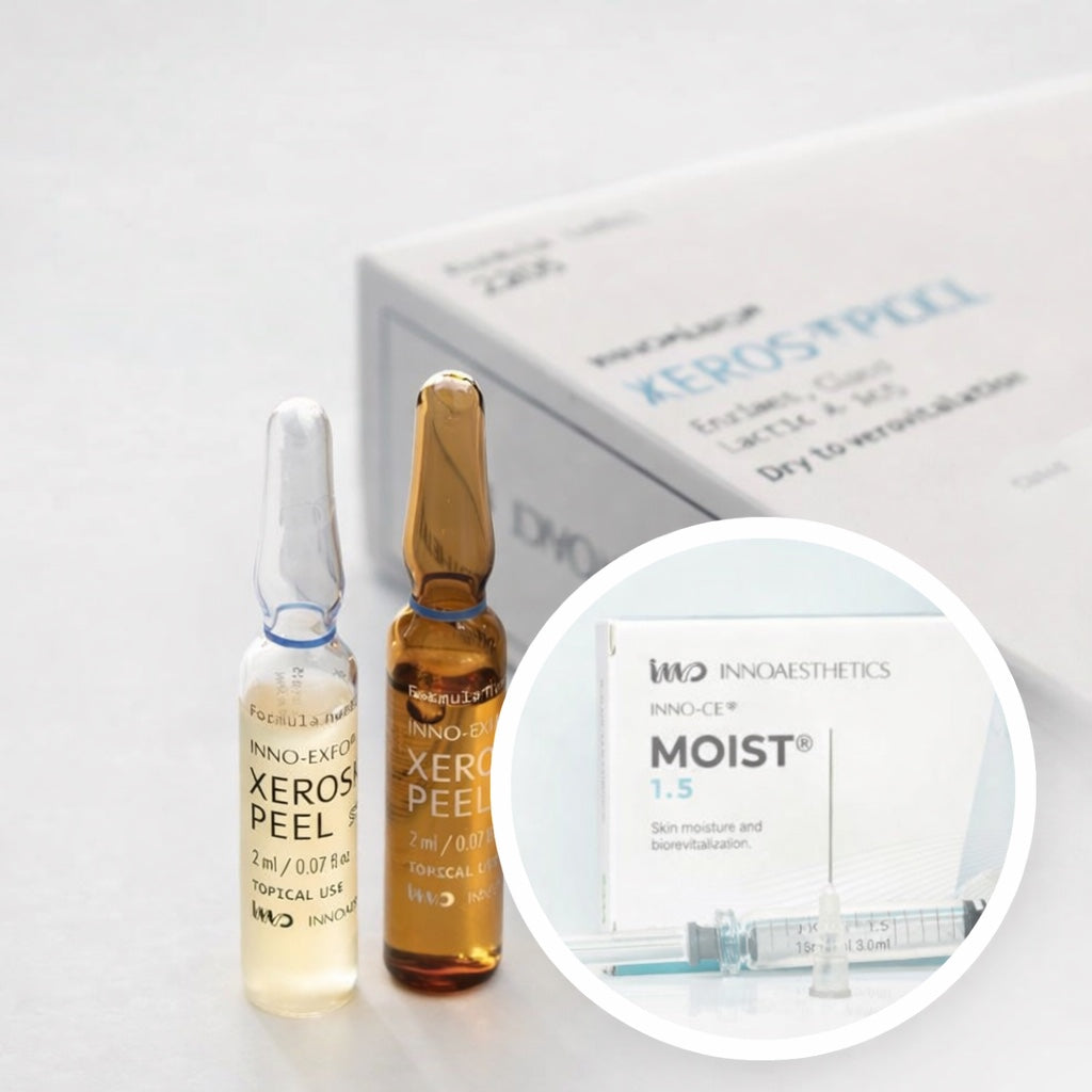 Xeroskin Peel + Moist injeksjonsbehandling – for deg som i tillegg ønsker en dypere hydrering med hyaluronsyre injisert i huden for langvarig effekt.